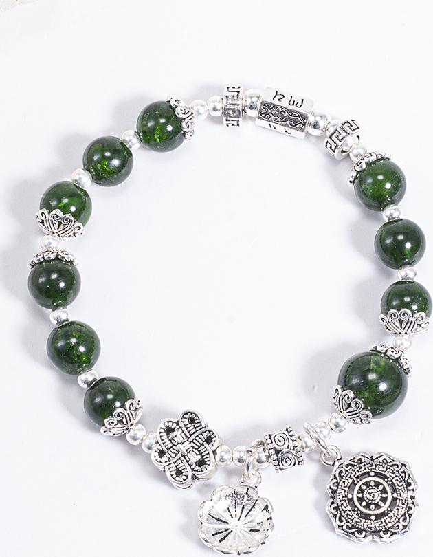 Vòng Tay Phong Thủy Nữ Đá Diopside Phối Charm Hoa Vintage (7mm) Mệnh Mộc, Hỏa