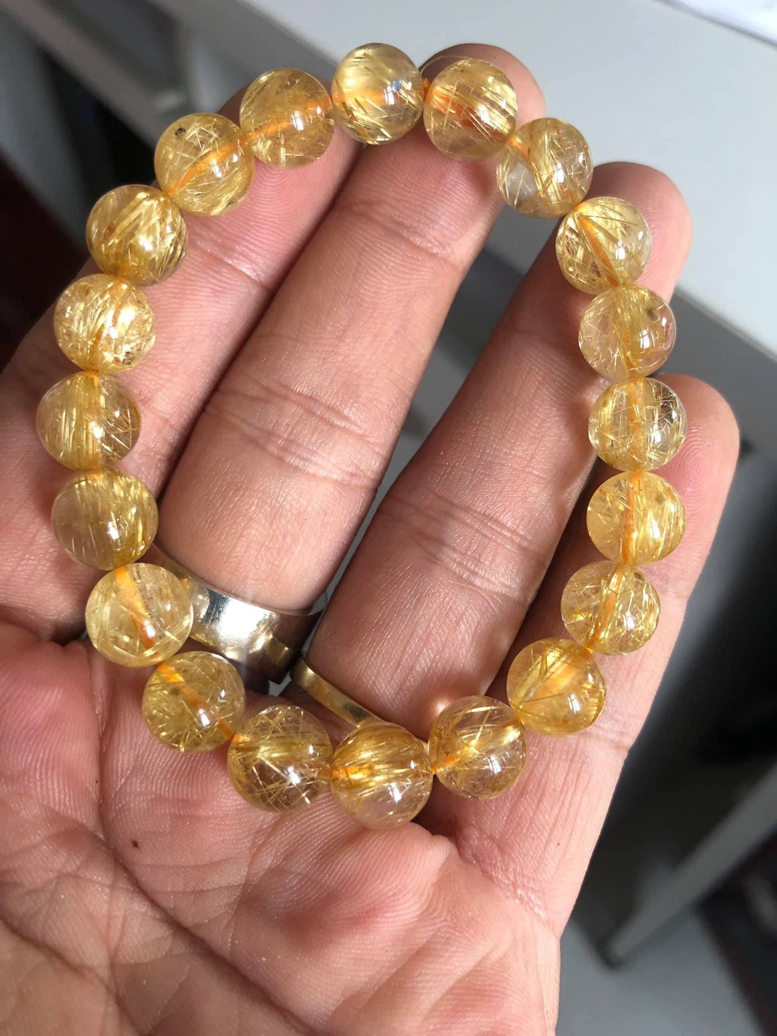 Vòng tay thạch anh tóc vàng siêu VIP cho mệnh Kim - Thổ - 42.9g - 12li giá 17500