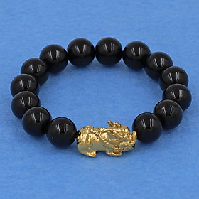 ✨Vòng tay thạch anh đen 12 ly - cẩn Tỳ Hưu inox vàng VTAETHV12 - hợp mệnh Thủy, mệnh Mộc