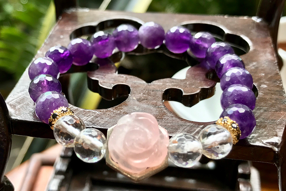 ✨Vòng Tay Thạch Anh Tím Mix Hoa Mẫu Đơn Ngọc Quý Gemstones TA021
