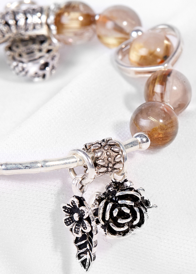 Vòng tay đá thạch anh tóc vàng phối charm bạc - Hợp mệnh kim, thủy | Ngọc Quý Gemstones |
