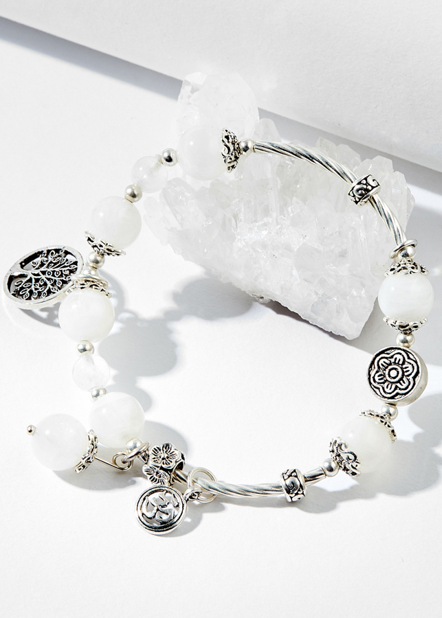 Vòng tay thạch anh ưu linh trắng charm én bạc Ngọc Quý GemstonesVòng tay thạch anh ưu linh trắng charm én bạc Ngọc Quý GemstonesVòng tay thạch anh ưu linh trắng charm én bạc Ngọc Quý Gemstones