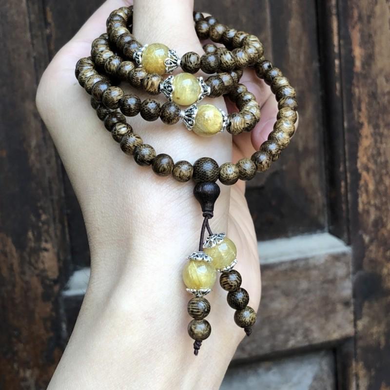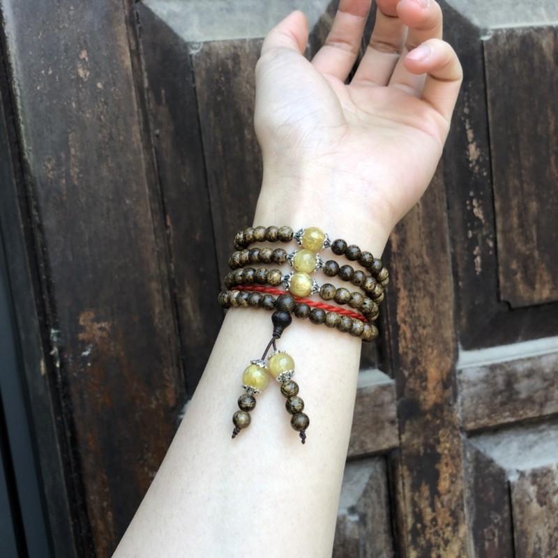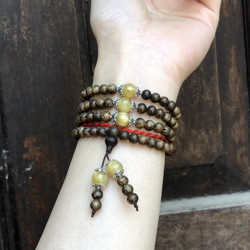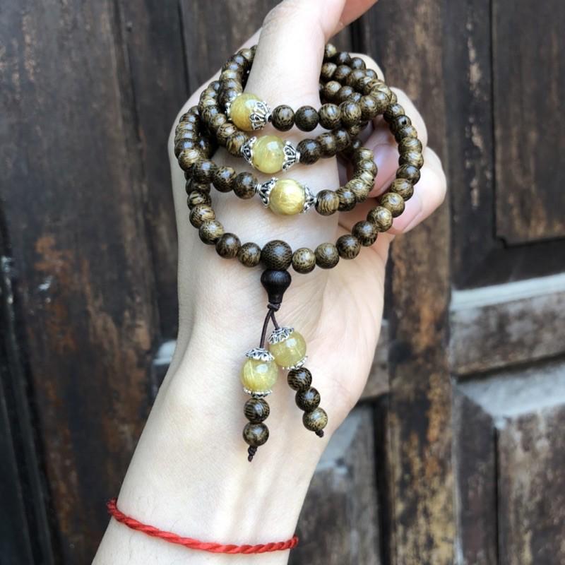 ✨Vòng Tay Trầm Hương phối Đá Tóc Vàng cùng charm bạc thái - bình an, may mắn, tài lộc