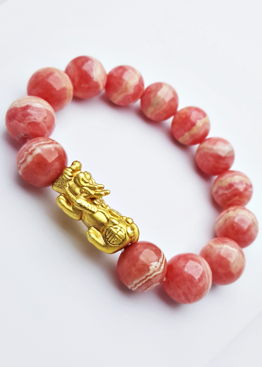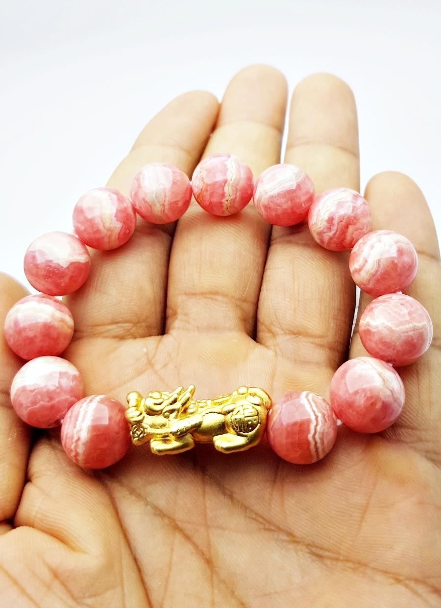 ✨ Vòng Tay Tỳ Hưu Đá Đào Hoa Rhodochrosite Tự Nhiên 14mm