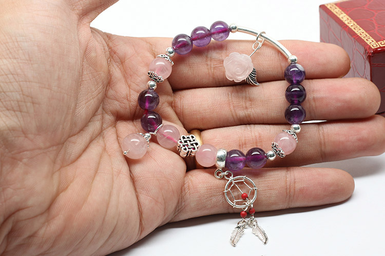 Vòng tay mix đá thạch anh tím & thạch anh hồng phối charm | Ngọc Quý Gemstones |
