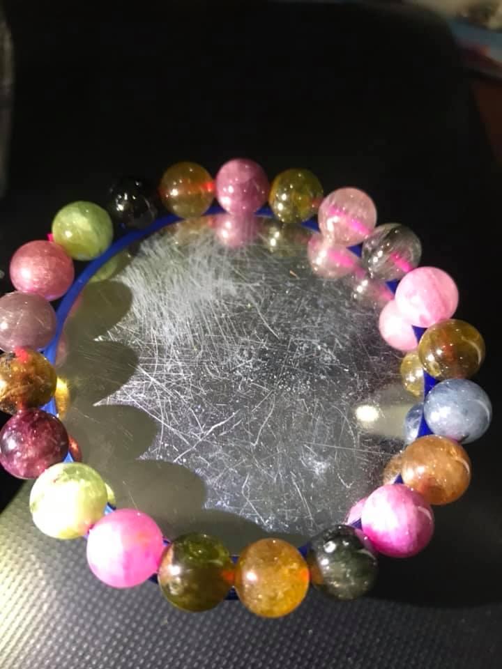 Vòng tay đá Tourmaline nhiều màu sắc mang lại bình an, may mắn #vongtay #vatphamphongthuy