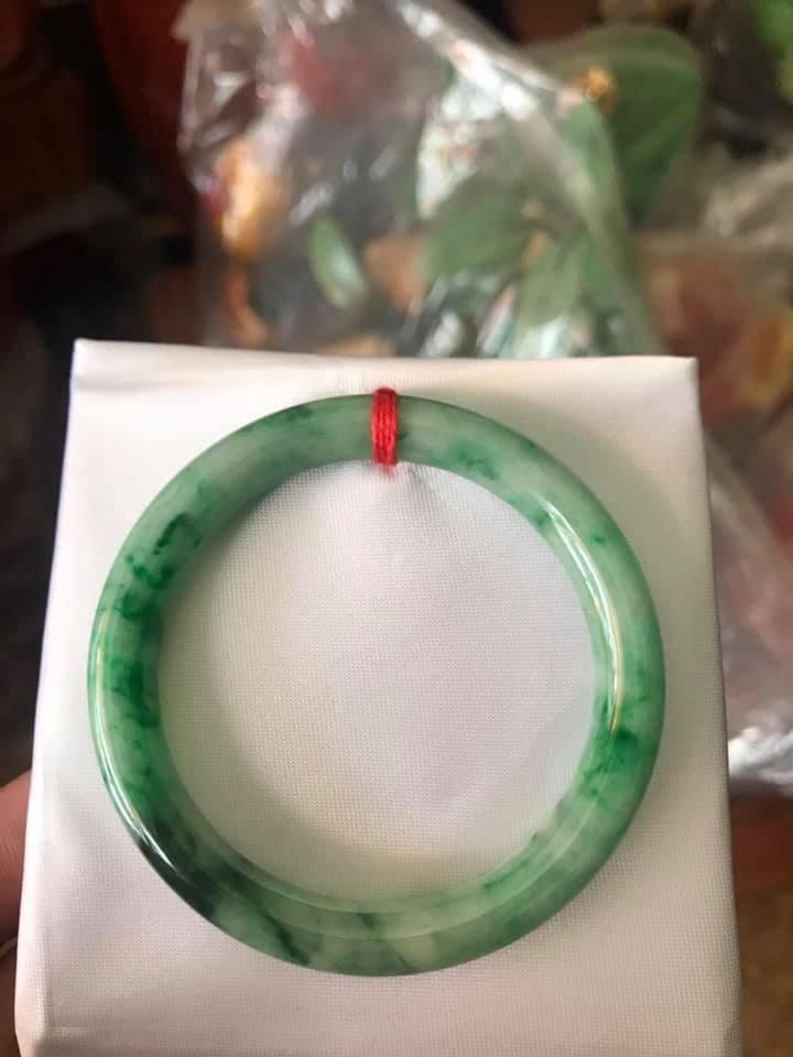 Vòng tay Nữ Đá Cẩm Thạch mới TR Lý 57 mm x cọng 7,5mm Màu Xanh lý tươi trắng 2 bên đều vòng đẹp Nữ 55kg - 64kg đeo đẹp món quà tặng chính mình