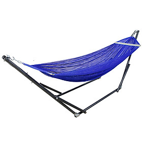 Ống thép, sơn tĩnh điện. đường kính 27.0mm, chiều dày 0.9mm. 4 thanh chống uốn cong, thẩm mỹ, thông thoáng, an toàn. Võng lưới sợi 100% polyester, mềm mịn, có độ co giãn, lưới Xuất
