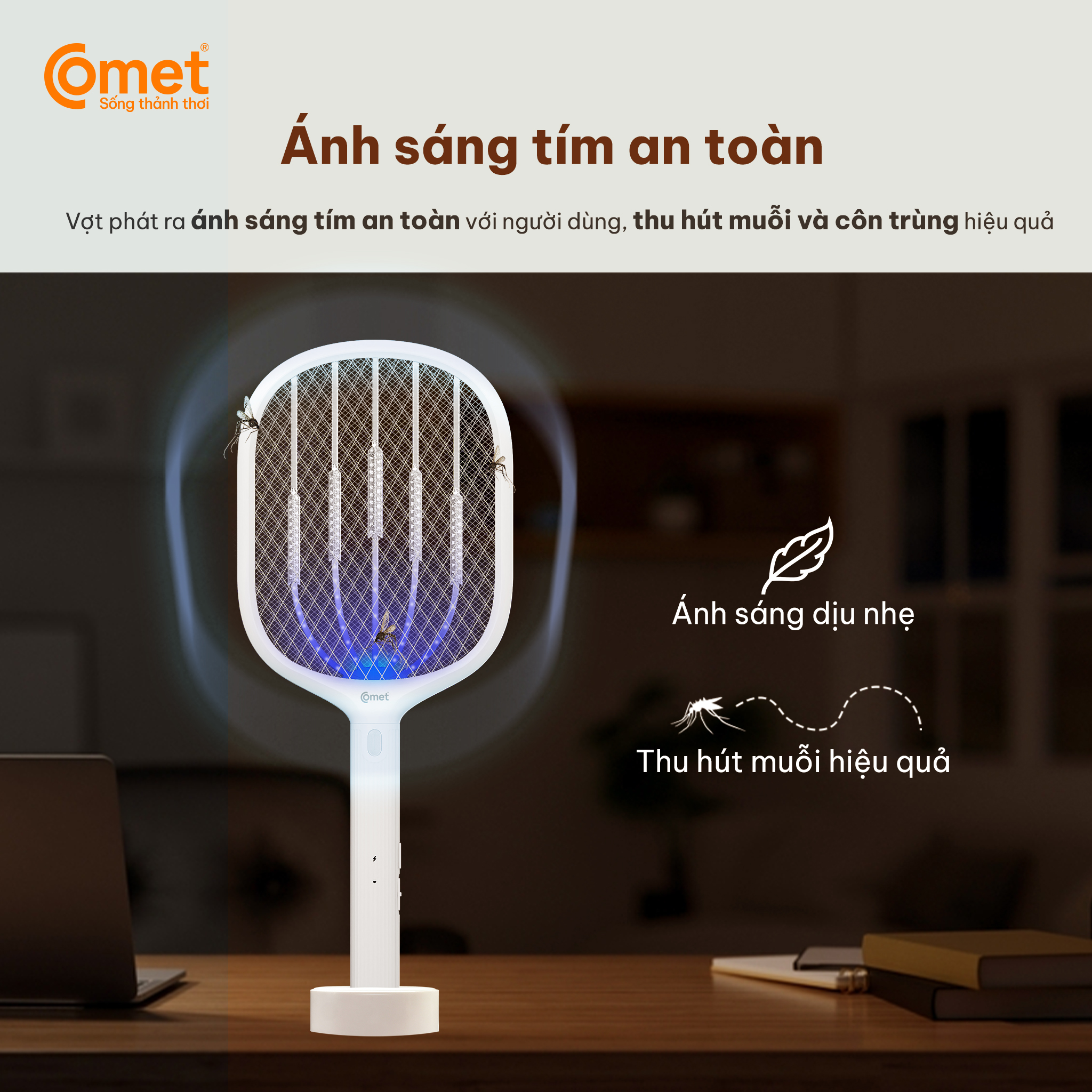 ✨Vợt muỗi điện Comet CP049 Pin Lithium 500mAh sạc 2h dùng 10 ngày BH 12T cổng sạc type C