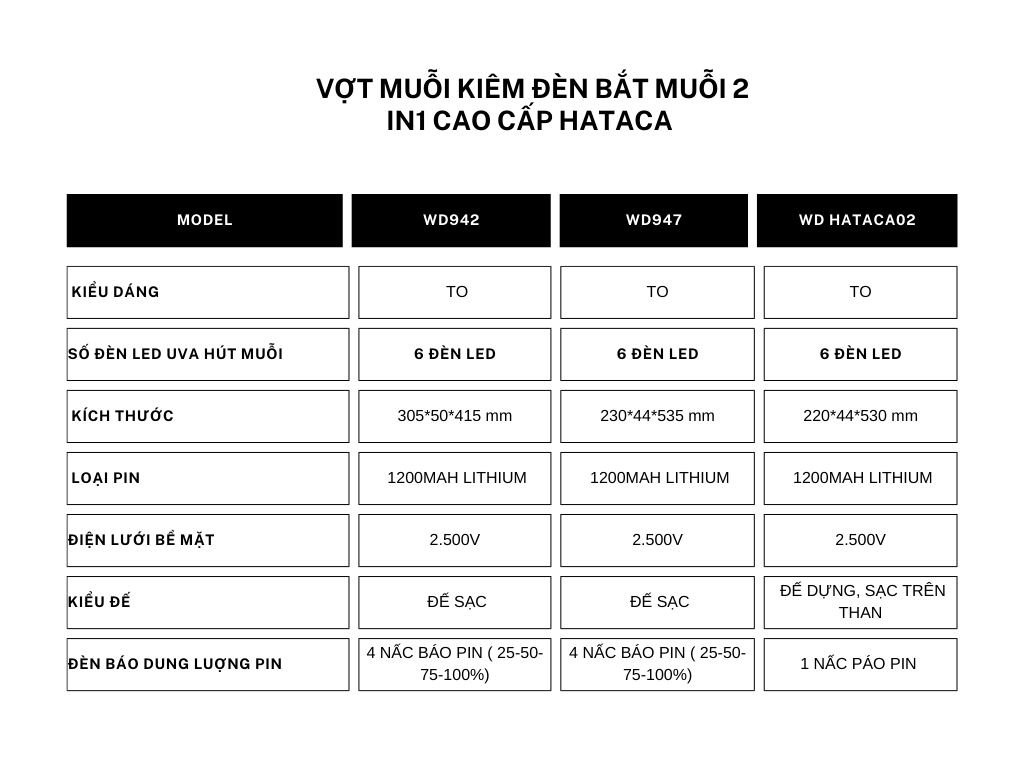 ✨Vợt muỗi kiêm đèn bắt muỗi 2 trong 1 Hataca ( Hàng chính hãng)