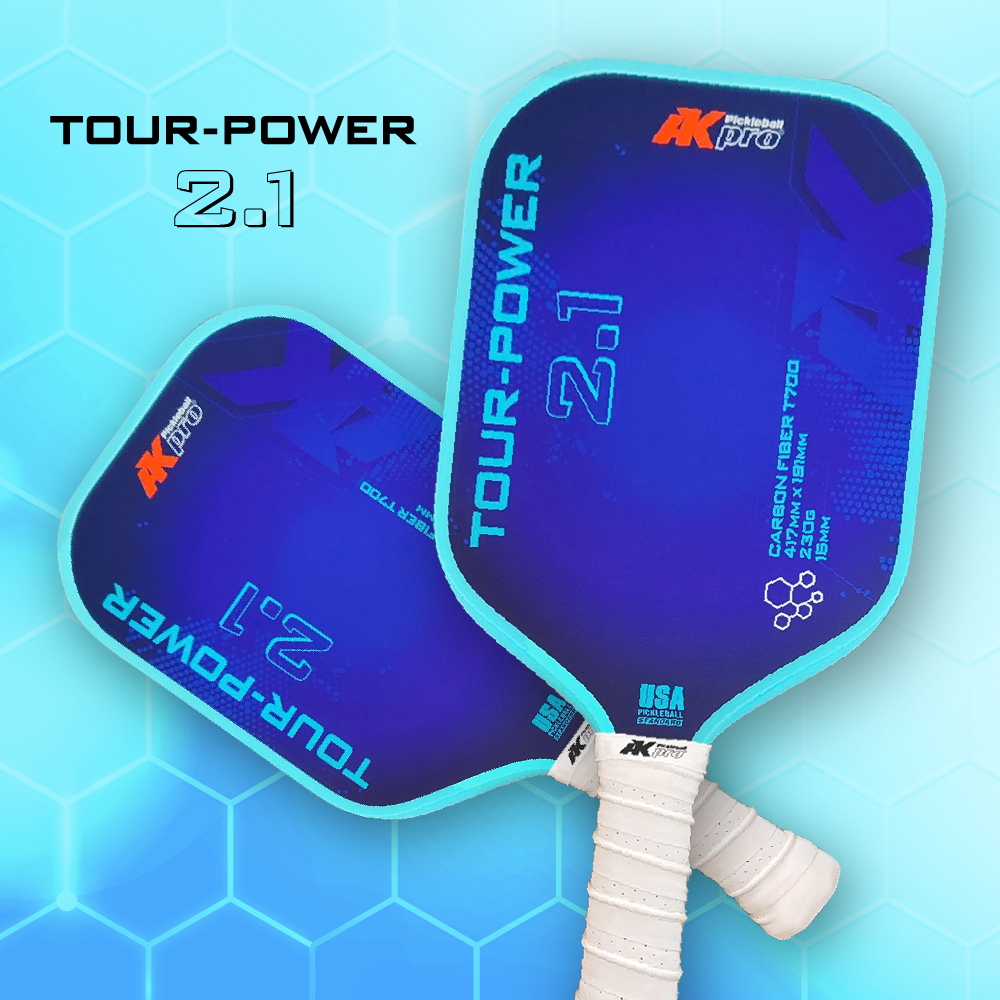 Vợt Pickleball TOUR-POWER 2.1 sử dụng carbon T700 mặt nhám nên tạo xoáy và kiểm soát bóng cực tốt. Loại vật liệu này cũng tạo ra những cú đánh mạnh và chính xác.