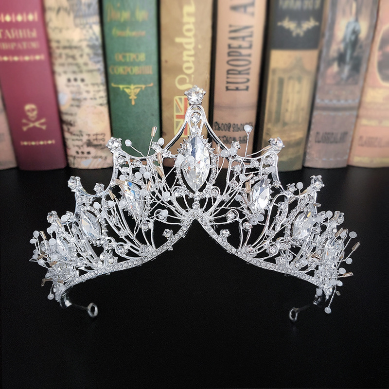 Vương miện cô dâu 7cm đá hạt trai S221338 Chất liệu hợp kim xi mạ đính hạt trai cao cấp Khuôn đúc Gắn đá