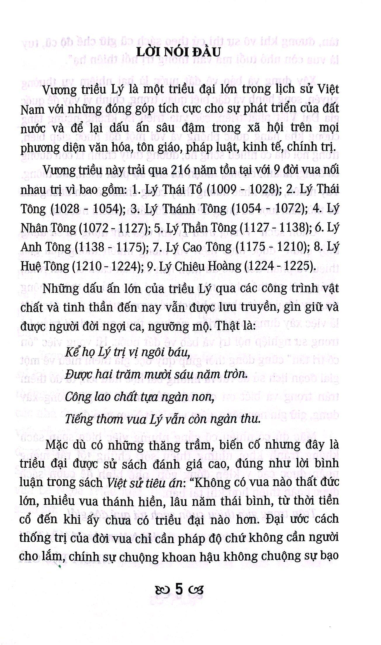 Vương triều Lý là một triều đại lớn trong lịch sử Việt Nam với những đóng góp tích cực cho sự phát triển của đất nước. Vương triều Lý trải qua 216 năm tồn tại với 9 đời vua, đã có rất nhiều câu chuyện, giai thoại ly kỳ, thú vị mà sử sách cũng như dã sử còn ghi chép, lưu truyền.