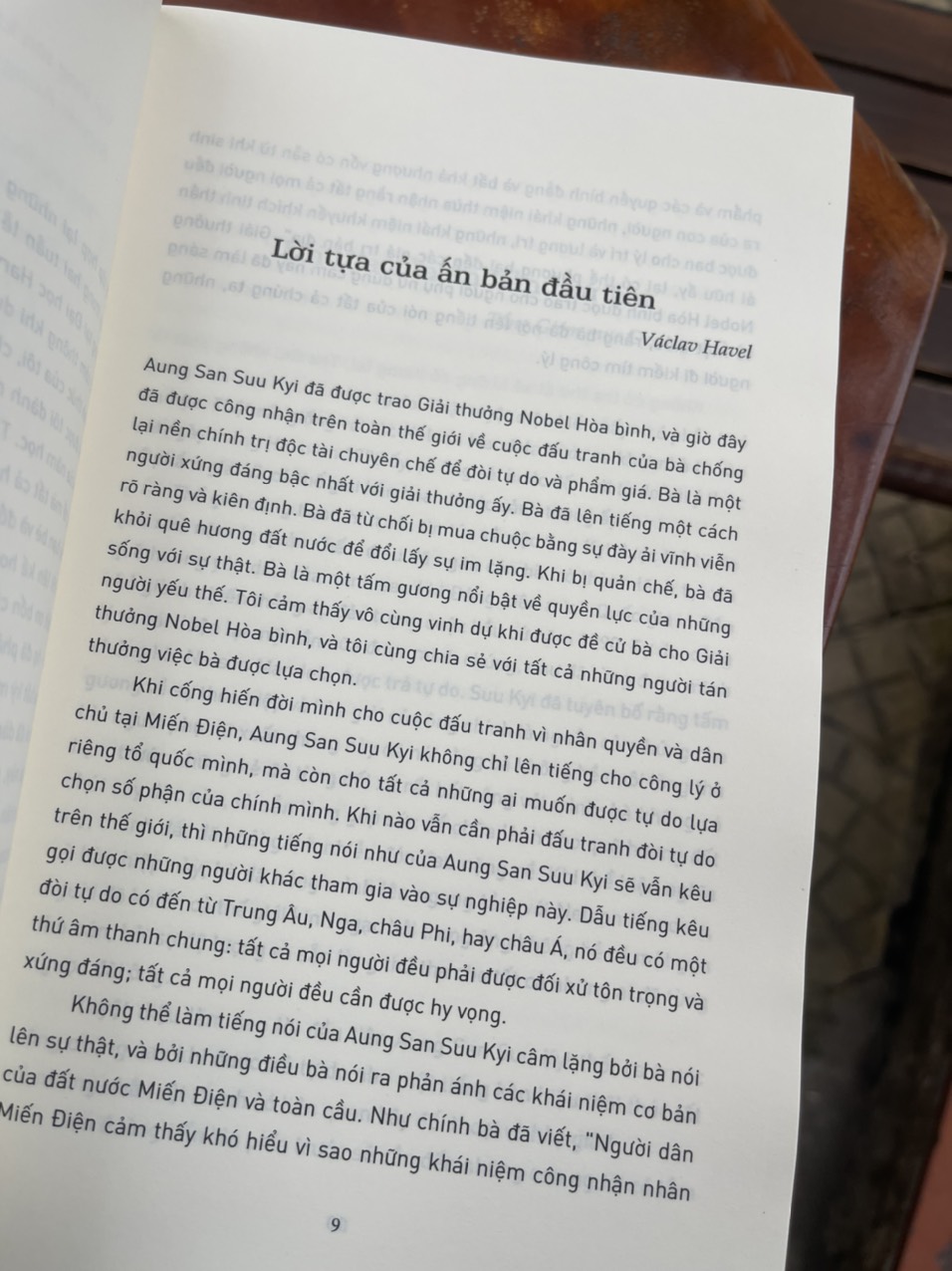 Những bài luận chặt chẽ, đanh thép của Aung San Suu Kyi cùng những bài viết về bà sẽ giúp ta thấu hiểu suối nguồn của hệ thống qian điểm chính trị cũng như sức mạnh tinh thần phi thường nơi người phụ nữ này. Những trang viết đó cũng sẽ mở ra trước mắt ta cả một bức tranh về lịch sử - văn hóa - xã hội - chính trị của đất nước Miến Điện - cái nôi nuôi dưỡng nên một Aung San Suu Kyi của quá khứ, hiện tại và tương lai.