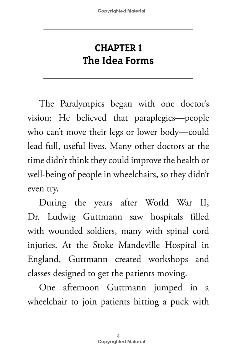 As the Opening Ceremony for the 1948 Summer Olympic Games commenced in London, a similar sporting competition was taking place a few miles away. But the men at Stoke Mandeville weren't your typical athletes. They were paralyzed World War II veterans. The games at Stoke Mandeville were so successful that they would eventually lead evolve into the Paralympics. Participants from all around the world vie for the gold medal in a variety of sports, including archery, basketball, swimming, speed skating, and ice hockey. Author Gail Herman highlights their achievements, describes how these athletes train--both mentally and physically--for the games, and gives the reader a better understanding of what makes the Paralympic Games one of the world's most viewed sporting events.