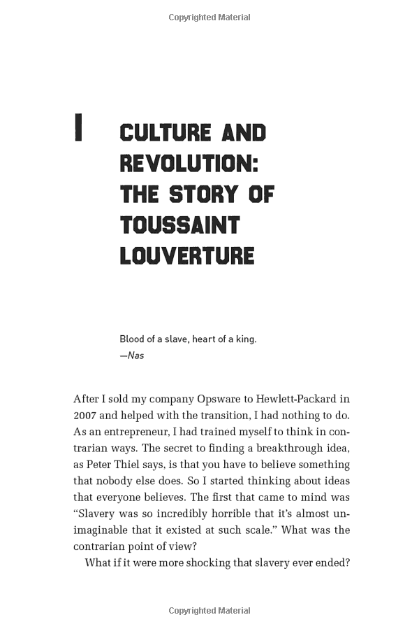 Horowitz connects these leadership examples to modern case-studies, including how Louverture's cultural techniques were applied (or should have been) by Reed Hastings at Netflix, Travis Kalanick at Uber, and Hillary Clinton, and how Genghis Khan's vision of cultural inclusiveness has parallels in the work of Don Thompson, the first African-American CEO of McDonalds, and of Maggie Wilderotter, the CEO who led Frontier Communications. Horowitz then offers guidance to help any company understand its own strategy and build a successful culture.