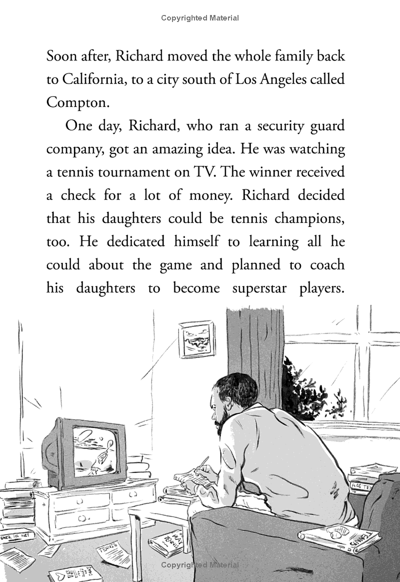 The dynamic story of the Williams sisters, both top-ranked professional tennis players. Venus and Serena Williams are two of the most successful professional American tennis players of all time. Coached at an early age by their parents, the sisters have both gone on to become Grand Slam title winners. They have both achieved the World Number One ranking in both singles and doubles! Although completely professional and fiercely competitive, the sisters remain close. Who Are Venus and Serena Williams? follows the pair from their early days of training up through the ranks and to the Summer Olympic Games, where they have each won four gold medals--more than any other tennis players. This title in the New York Times best-selling series has eighty illustrations that help bring the exciting story of tennis champs Venus and Serena Williams to life.