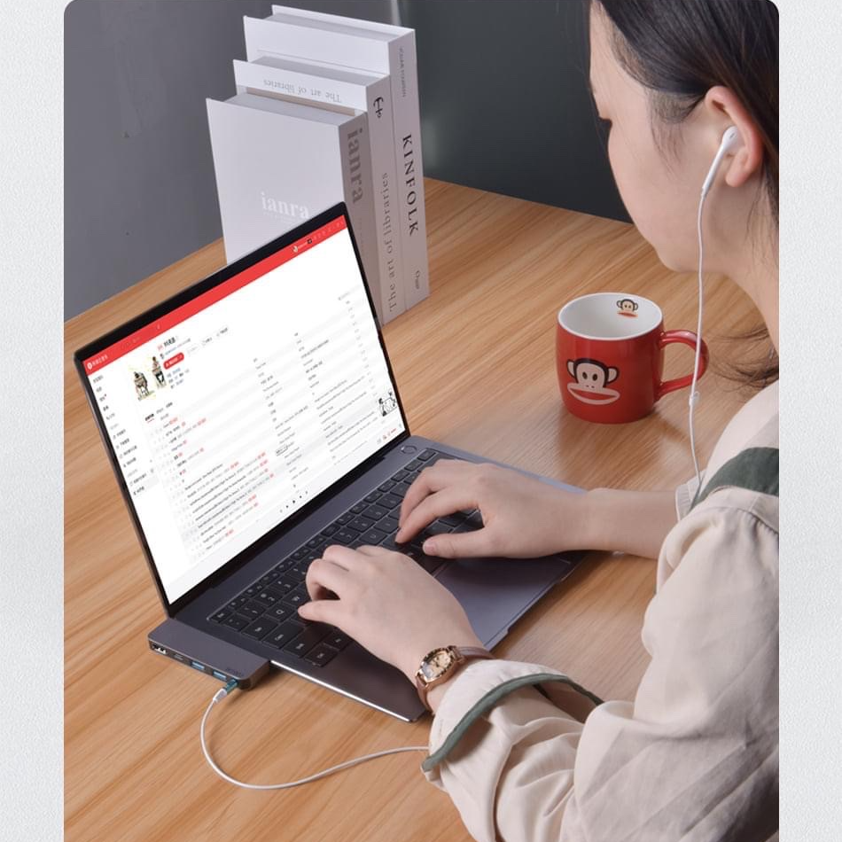 Input: Type C Output Có 4 phiên bản : - 4 in 1: HDMI, USB3.0, USB2.0, Type C (PD100W) - 5 in 1: HDMI, USB3.0*3, Type C (PD100W) - 6 in 1: HDMI, USB3.0*3, RJ-45,