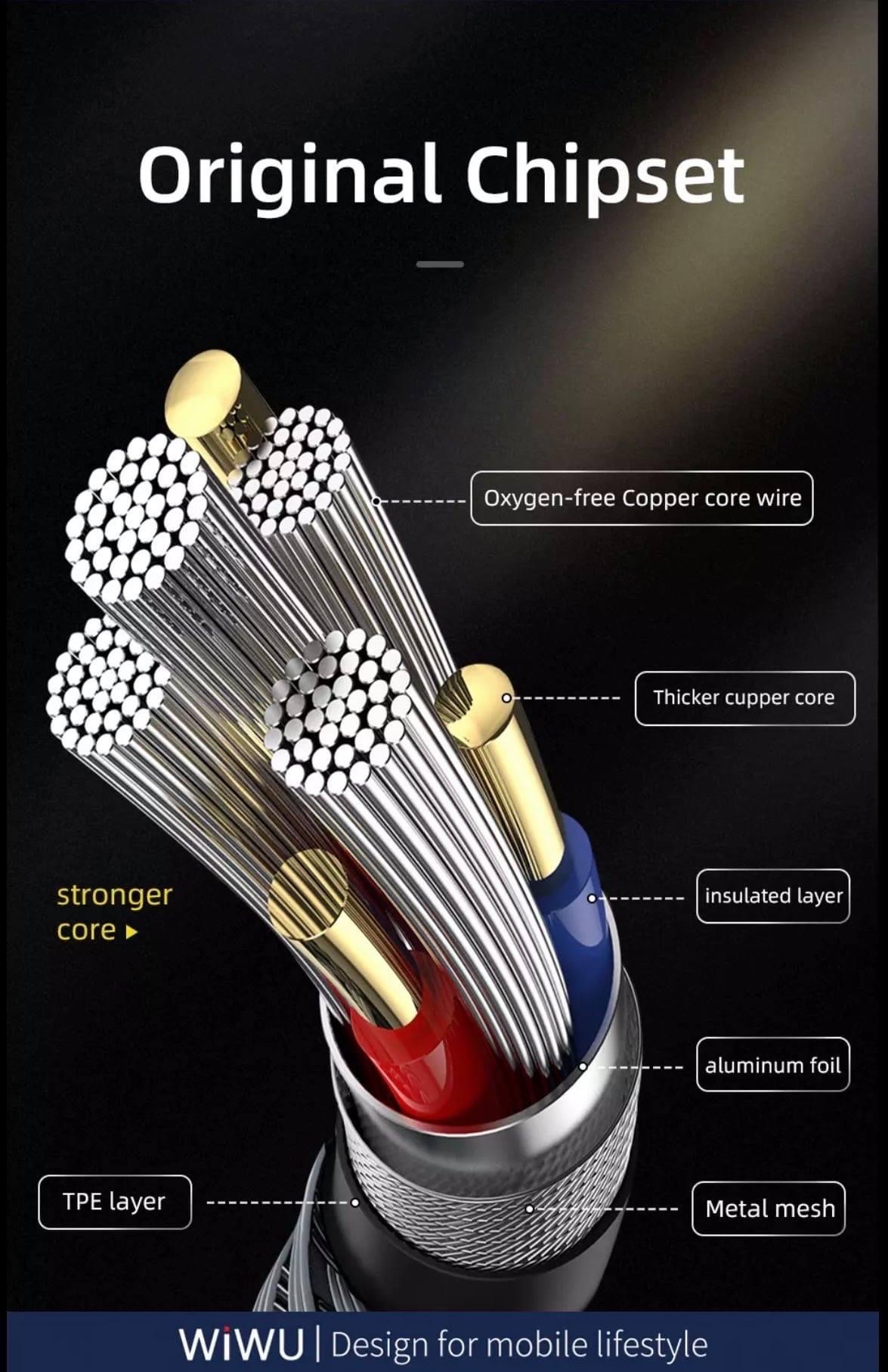 - Cáp sạc 3 đầu chính hãng Wiwu đầu mạ vàng 18k tạo cảm giác sang trọng cho người sử dụng đẳng cấp
