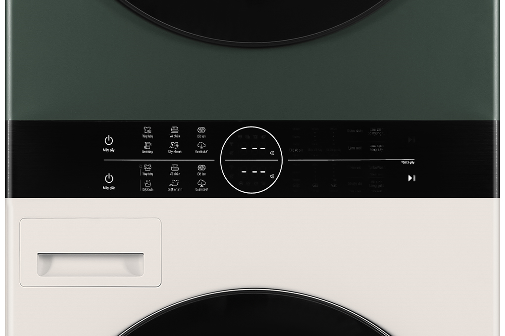 Mua tại TiktokTháp giặt sấy LG Inverter giặt 25 kg - sấy 17 kg WT2517NHEG có kiểu dáng độc đáo, cho phép bạn giặt và sấy quần áo cùng một lúc với khối lượng quần áo lớn. Sản phẩm còn có khả năng tối ưu chu trình giặt sấy và tiết kiệm điện nước đáng kể nhờ công nghệ Auto Sense AI DD. Tính năng đặc biệt của sản phẩm Tháp giặt sấy LG Inverter WT2517NHEG là dòng sản phẩm đầu tiên tích hợp giữa máy giặt (phía dưới) và máy sấy quần áo (phía trên) của hãng LG, mang lại cho bạn sự trải nghiệm sản phẩm độc đáo về phong cách thiết kế. Hơn nữa, sản phẩm còn cho phép bạn giặt và sấy quần áo với khối lượng lớn cùng một lúc tiện lợi. *Hình ảnh chỉ mang tính chất minh họa Thiết kế