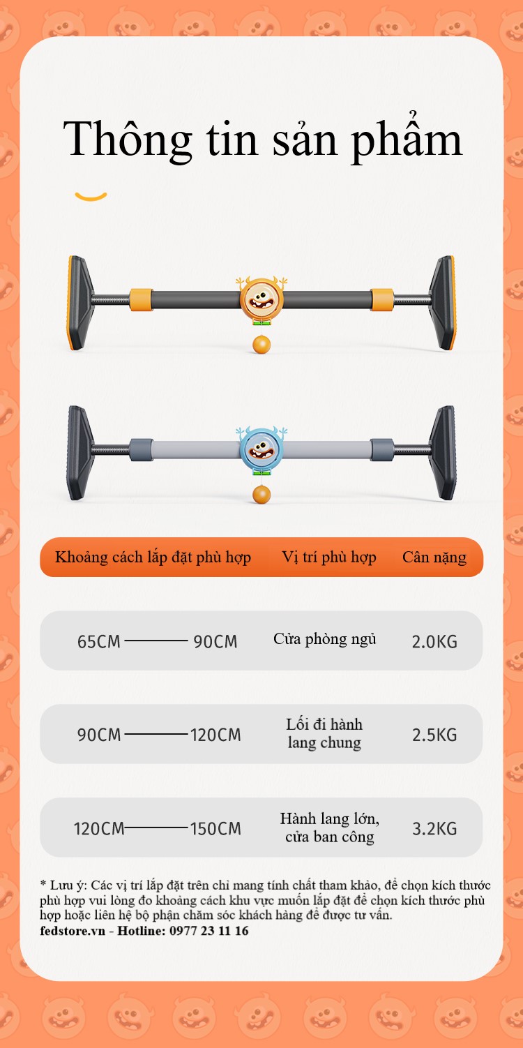 Tên Sản Phẩm XÀ ĐƠN GẮN CỬA FED Mã SP FED-0228 Màu Sắc Đen Cam Kích Thước 90cm - 115cm (Tùy chỉnh độ dài của xà theo kích thước cửa) Chất Liệu Thép carbon, PVC,