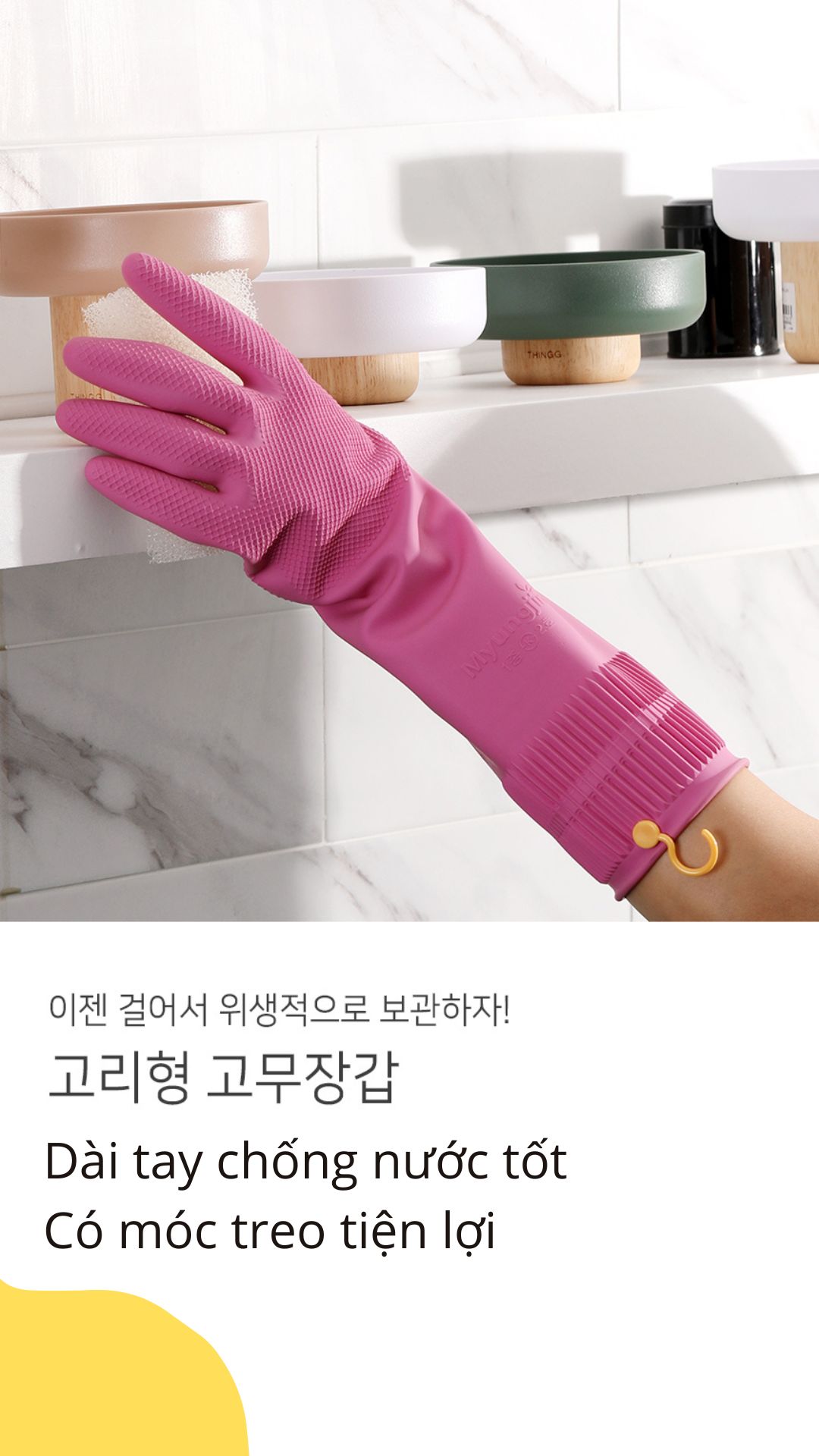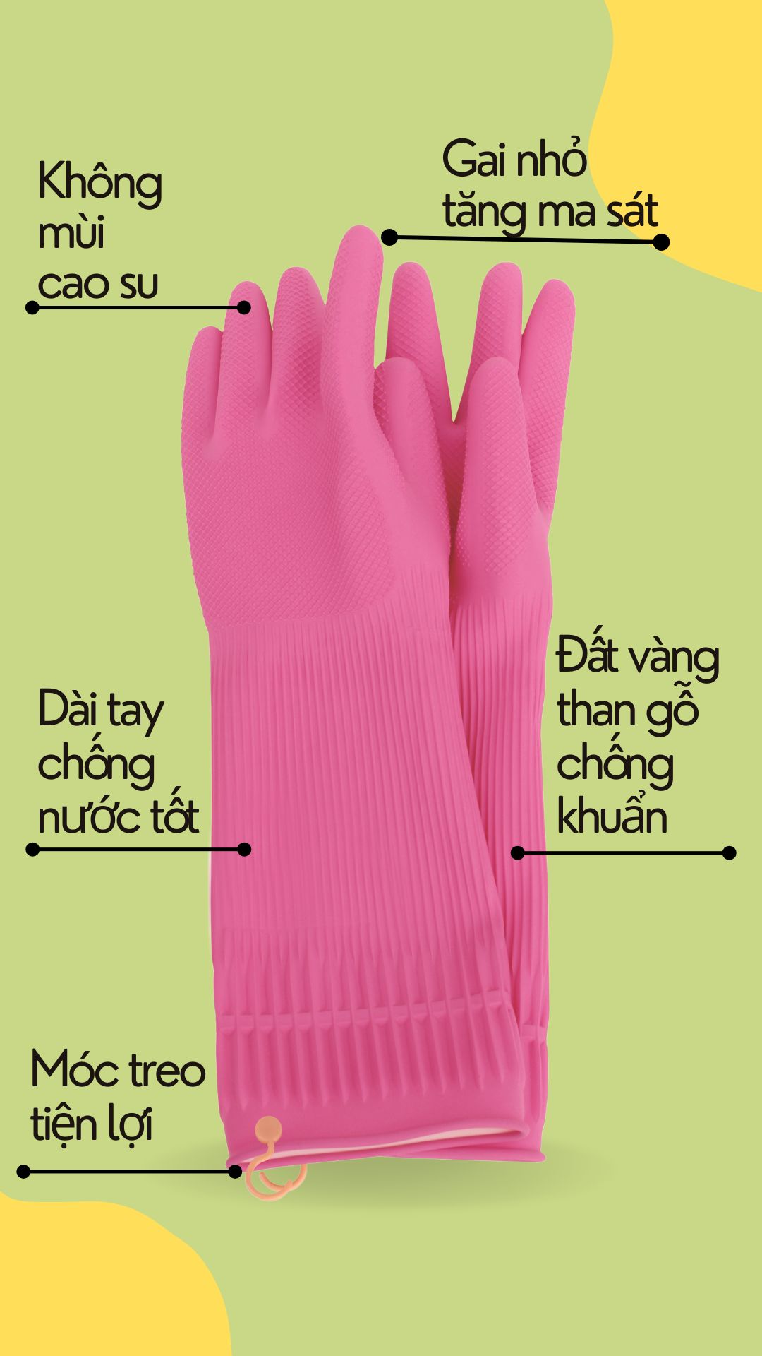 - Công dụng: Dùng để bảo vệ da tay khi cọ rửa nhà vệ sinh, rửa bát…