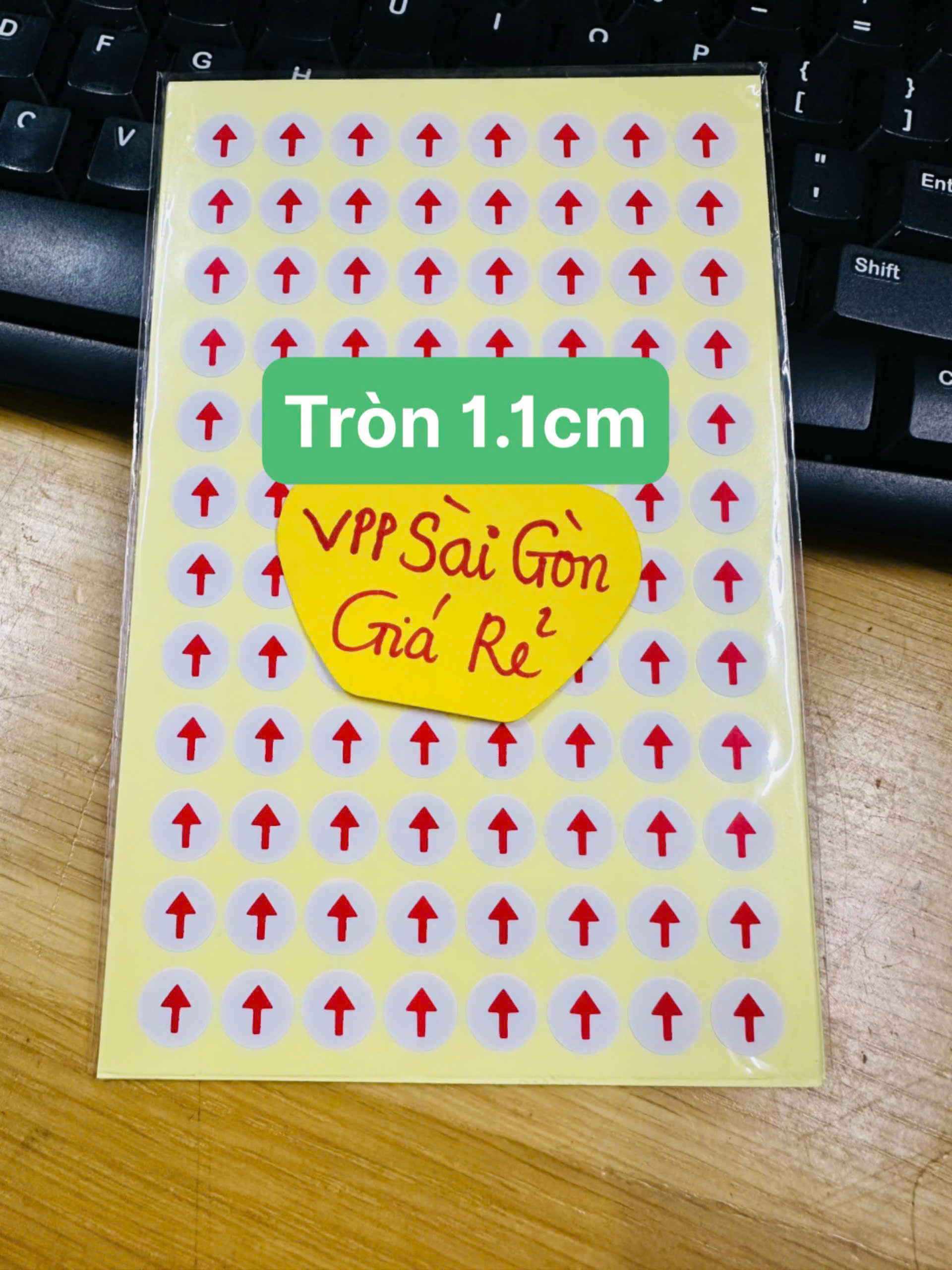 – Giấy decal mũi tên là loại giấy mũi tên đỏ được in trên nhãn hình tròn hoặc hình chữ nhật, thường được sử dụng để đánh dấu lỗi trên sản phẩm trong quá trình kiểm tra.