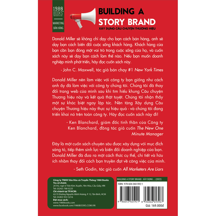 Cuốn sách“Xây dựng câu chuyện thương hiệu”của Donald Miller giúp bạn tồn tại trong một thế giới ồn ã, nhiễu loạn thông tin. Khi câu chuyện bạn kể đủ rõ ràng và hấp dẫn, bạn sẽ chạm được đến trái tim khách hàng, thôi thúc họ hành động và tin tưởng bạn – với chi phí tiết kiệm nhất. Và tác phẩm này hướng dẫn bạn công thức đơn giản nhất để làm được điều đó, thông qua những ví dụ sinh động và sát thực.