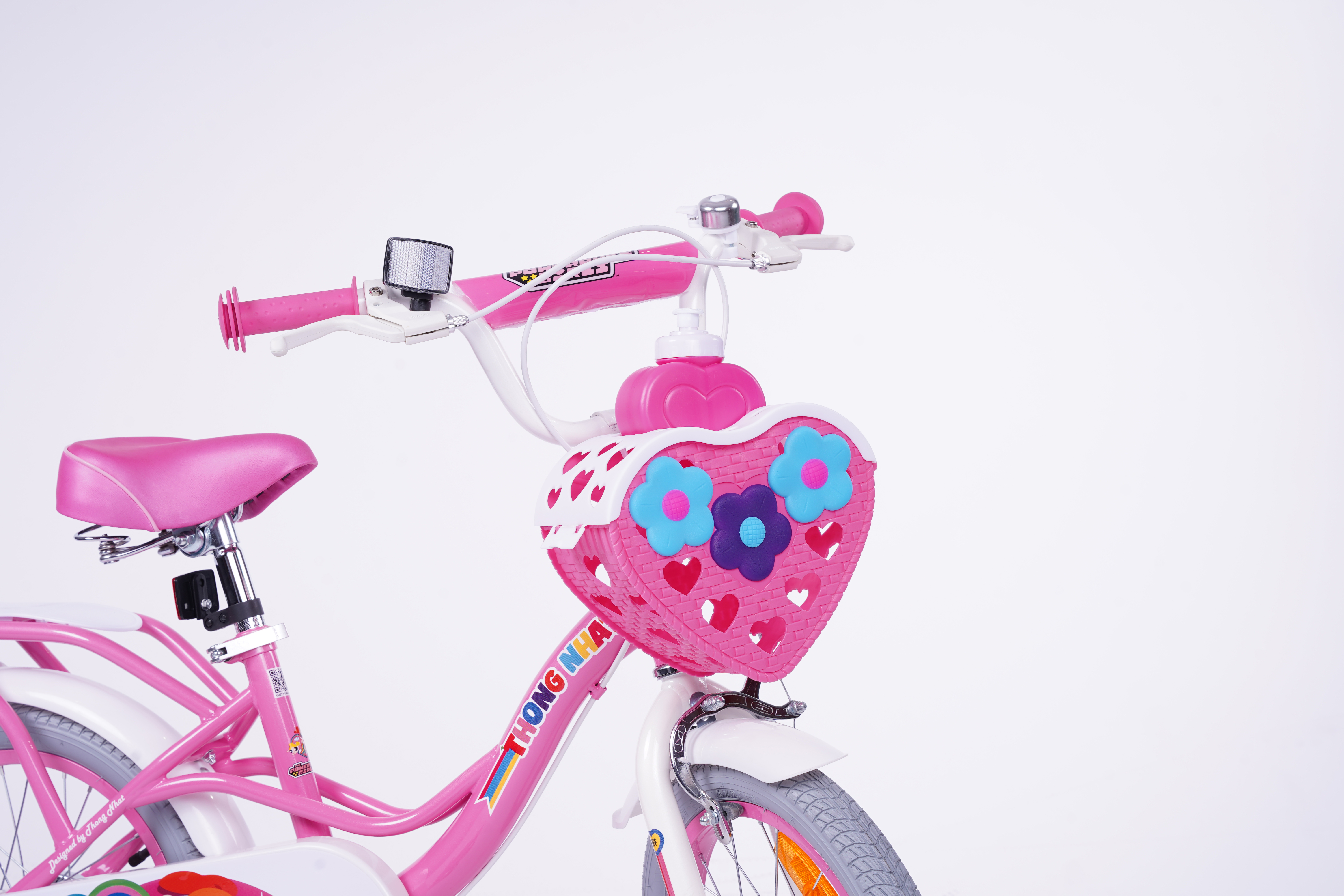 - Xe được hãng Thống Nhất trang bị nhiều tiện ích như chuông, tấm chắn bùn, gacbaga sau và chiếc giỏ theo màu xe rất đẹp cho bé đựng thêm những món đồ yêu thích.
