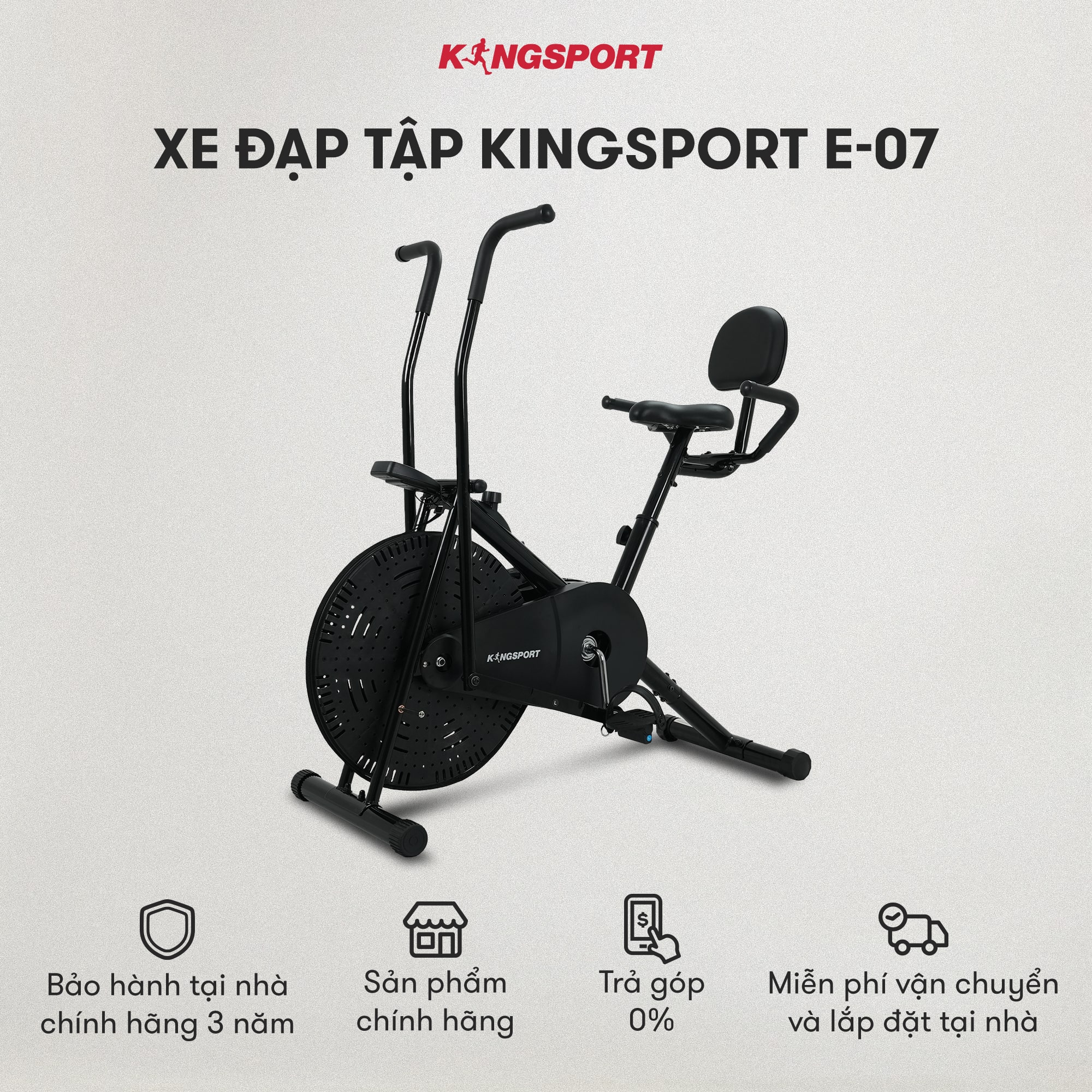 Xe đạp tập KingSport Classic E-07 với những ưu điểm tuyệt vời trong thiết kế và tính năng sẽ là một lựa chọn hoàn hảo cho hoạt động tập luyện tại nhà. Hãy liên hệ ngay với KingSport hôm nay để được tư vấn, đặt mua và giao hàng tận nơi nhé.