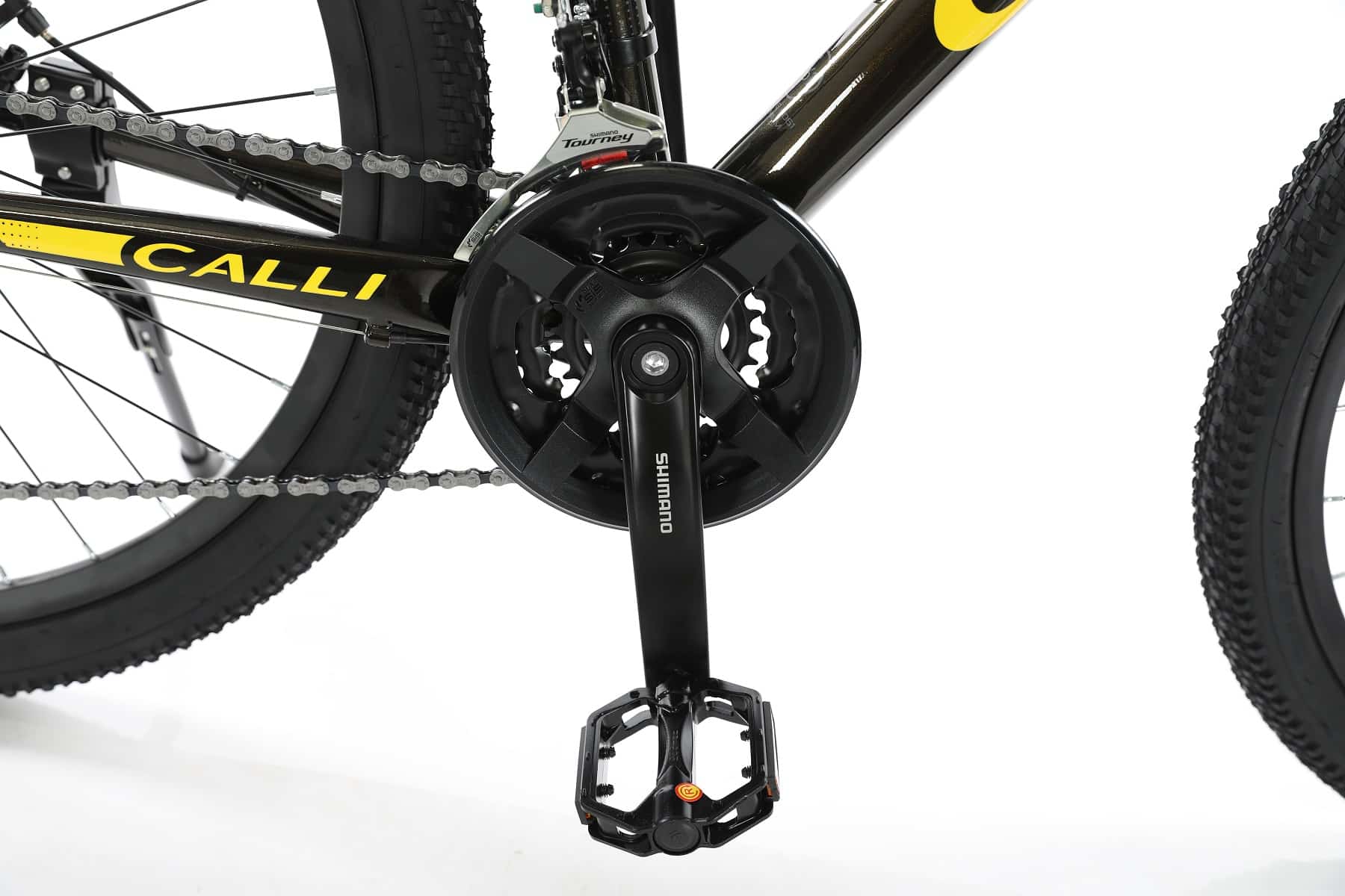 Xe đạp địa hình Calli 3600 là mẫu xe tiêu biểu cho thương hiệu Calli – ngoại hình chất, cấu hình mạnh, có thể đáp ứng mọi yêu cầu của một chiếc xe địa hình tầm trung. Với bộ truyền động Shimanô TOURNEY 24 tốc độ cùng phanh đĩa cơ, chiếc xe đặt trải nghiệm của người sử dụng lên hàng đầu. CHIẾC XE SẼ MANG ĐẾN CHO BẠN… Tất cả những gì bạn có thể mong đợi ở một chiếc xe địa hình tầm trung. Không cần phải nói quá nhiều về ngoại hình đẳng cấp của thương hiệu Calli, với lớp sơn tĩnh điện cao cấp và bộ phối màu ấn tượng. Calli 3600 trang bị bộ truyền động Shimanô TOURNEY 24 tốc độ mượt mà, linh hoạt trên mọi cung đường, đồng thời phanh đĩa cơ đảm bảo an toàn khi trời mưa, đường dốc, gồ ghề.   Khung Hợp kim nhôm 6061 không mối hàn, dây âm sườn, sơn tĩnh điện cao cấp Càng/Phuộc Phuộc nhún lò xo CALLI Số 24 tốc độ Tay đề Shimanô EF500 38 Gạt đĩa Shimanô TOURNEY TY300 3S Củ đề Shimanô TOURNEY TY300 8S Đùi đĩa Shimanô TY301 3 tầng 24-34-42T Líp Shimanô CS-HG200 8 tầng 12-32T Xích FFC Z51 Trục giữa Trục cốt vuông bạc đạn Phanh Phanh đĩa cơ YINXING Vành Nhôm 2 lớp CALLI Mayer Nhôm CALLI Lốp Kenđa 27.52.10 Bàn đạp/Pê-đan Nhôm Tay lái/Ghi-đông Nhôm CALLI Pô-tăng Nhôm CALLI Cọc yên Nhôm CALLI Yên Yên thể thao cao cấp rỗng CALLI