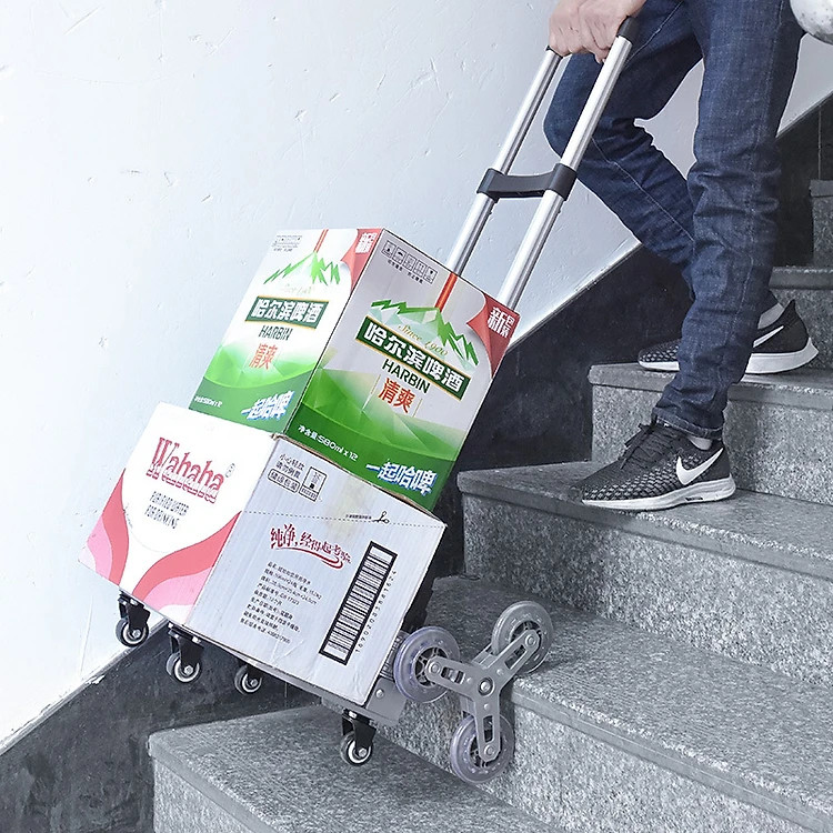 Xe đẩy hàng gấp gọn leo cầu thang 6 bánh, xe kéo hàng gấp gọn gia đình đa năng giá rẻ Xe kéo hàng gấp gọn có thể chịu lực đến 80kg. Được làm từ