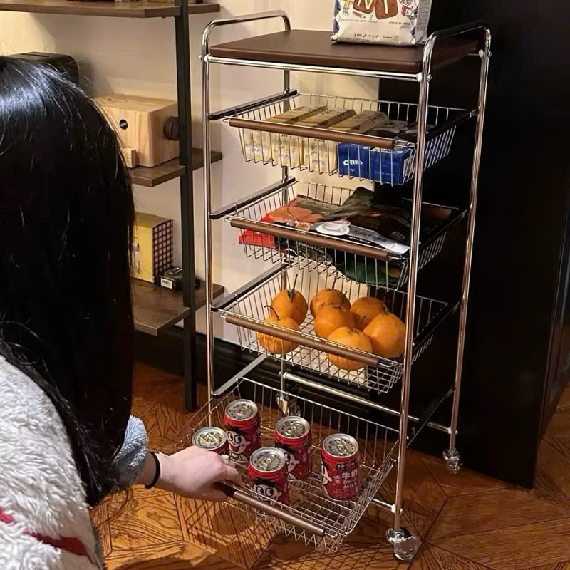 ✨Xe Đẩy Kệ Để Đồ Đa Năng Nhiều Ngăn Tầng Có Ván Gỗ Retro Vintage – Khung Kim Loại Chắc Chắn, Kệ Trang Trí Nhà Bếp Phòng Khách - HÀNG CHÍNH HÃNG MINIIN