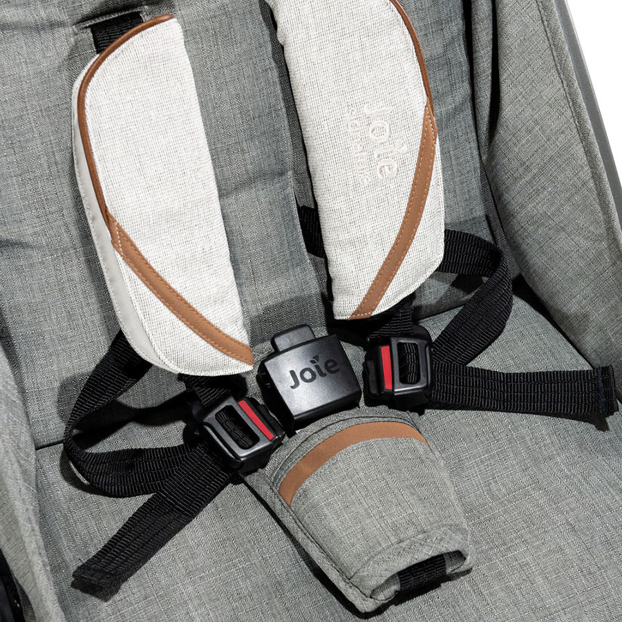 Đai cài an toàn 5 điểm với lớp đệm mềm mại bao phủ đai vai và khóa an toàn cho bé sự thoải mái, dễ chịu