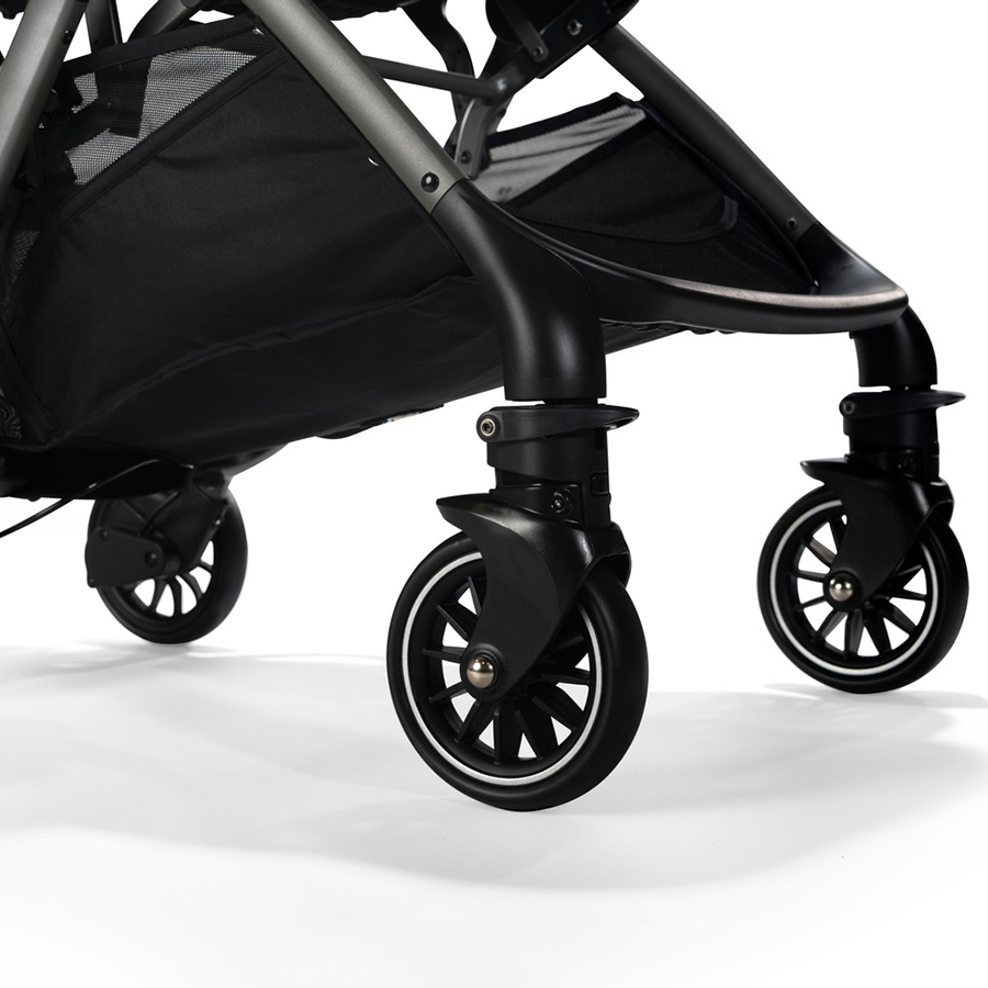 • Bánh xe cao su cao cấp có khả năng chống mài mòn và đâm thủng, cung cấp độ bám tốt • Cả bốn bánh xe đều trang bị giảm xóc • Mái che rộng,