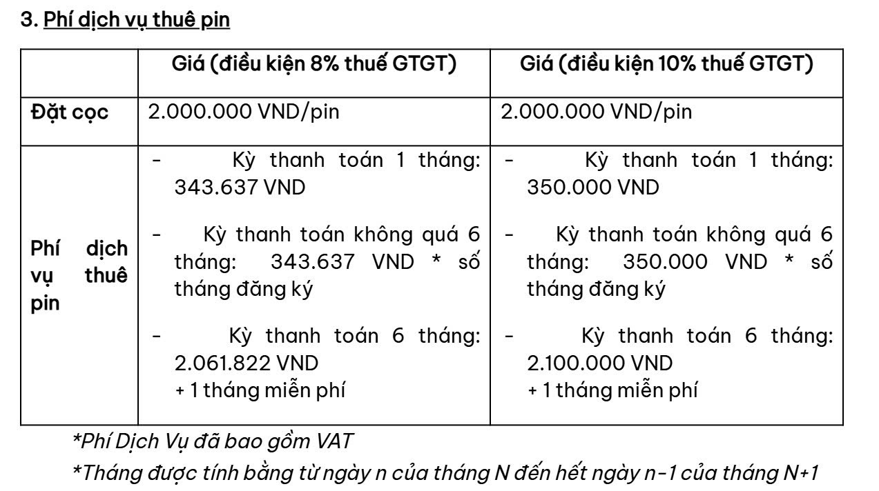 Giá niêm yết đã bao gồm VAT, chưa bao gồm phí thuê pin, chưa bao gồm phí giấy tờ ( thuế trước bạ, lệ phí biển số ) I.CHÍNH SÁCH THUÊ PIN:  II. MÔ TẢ