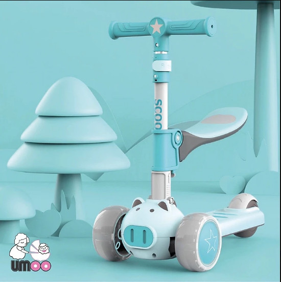 Xe trượt chòi chân Scooter Umoo 3kg cho bé 1-5 tuổi nâng hạ độ cao, bánh xe có đèn phát sáng Xe trượt Scooter cho bé Umoo 2 trong 1 hình heo vừa là xe
