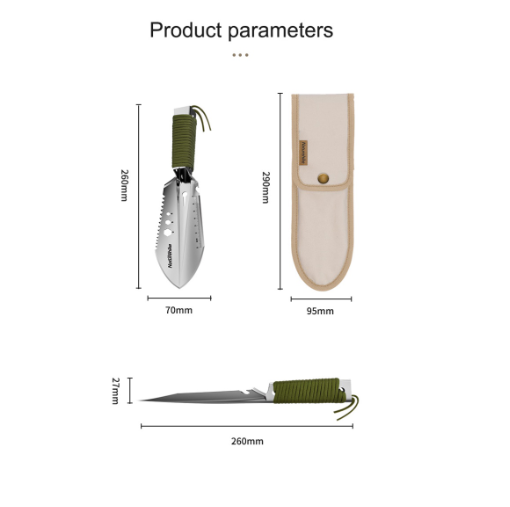 mini cầm tay NatureHike NH20GJ001 vô cùng đa năng 7 chức năng được thiết kế tích hợp trên sản phẩm thông minh, tiện dụng sử dụng trong các chuyến đi dã ngoại, ngoài trời, leo núi.… Xẻng được làm từ Thép không gỉ 3Cr13 chắc khỏe, chống mòn và chống han gỉ. Xẻng gồm túi đựng tiện lợi cho việc lưu trữ và di chuyển.