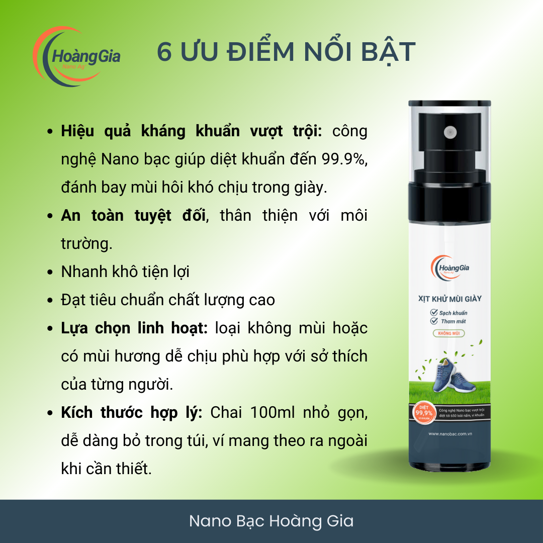 ✨Xịt Khử Mùi Khử Khuẩn Giày Dép Nano Bạc Hoàng Gia HGshop 100ml Bảo Vệ SK Giảm Hôi Chân
