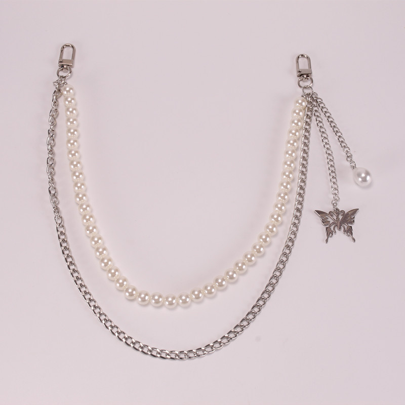 ✨Xích đeo quần jeans cá tính 2 layer mix ngọc trai cánh bướm unisex cá tính nam nữ top trend