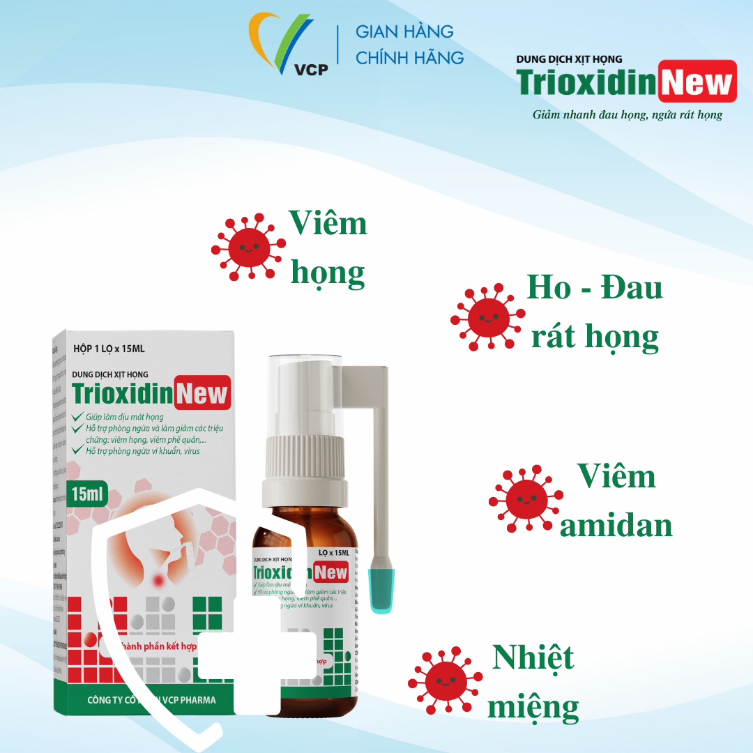 ✨Xịt Họng Trioxidin New VCP Pharma - Hỗ Trợ Giảm Các Triệu Chứng Ho, Đau Họng, Ngứa Rát Họng - Chai 15ml