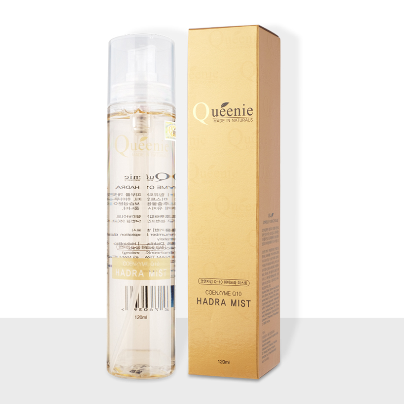 Xịt khoáng dưỡng ẩm Q10 chống lão hóa Queenie - Mỹ Phẩm Hàn Quốc Xịt khoáng dưỡng ẩm Queenie Coenzyme Q10 Hadra Mist với nguồn khoáng chất và các vitamin thiết yếu giúp tăng cường sức sống, miễn dịch cho làn da khỏe đẹp và tươi sáng. Sản phẩm chiết xuất chính từ: Coenzyme Q10, Axit Hyaluronic, nấm men sinh học giúp ngăn ngừa những yếu tố gây kích ứng, khô da, hạn chế da tiếp xúc với tia UV, làm cân bằng và cải thiện sức đề kháng cho da, đẩy lùi dấu hiệu lão hóa, bổ sung nước mọi thời điểm sau quá trình chăm sóc da cơ bản. Phù hợp với mọi loại da, đặc biệt tốt cho da dầu hoặc da trang điểm nhiều, thường xuyên phải tiếp xúc với môi trường điều hòa hoặc khói bụi ô nhiễm.