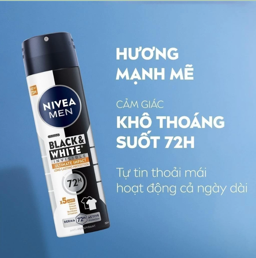 Xịt khử mùi ngăn vệt ố vàng cho nam Nivea Men Invisible Black&White với công thức tiên tiến giúp giảm hình thành vệt ố vàng trên áo. Giúp giảm tiết mồ hôi và khử mùi