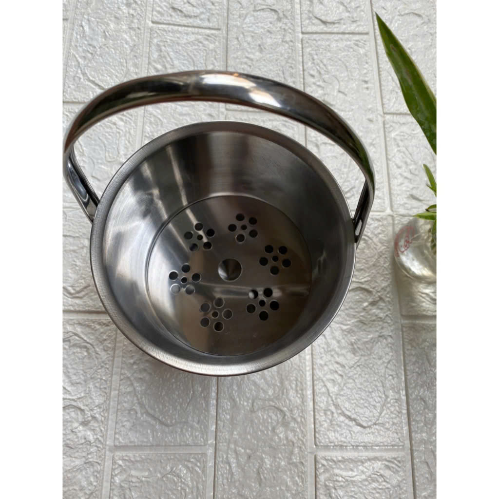 Sản phẩm được làm hoàn toàn bằng inox, có độ bóng sáng tự nhiên, không hoen gỉ. Xô có quai để tiện cho việc cầm nắm và dễ dàng xách di chuyển