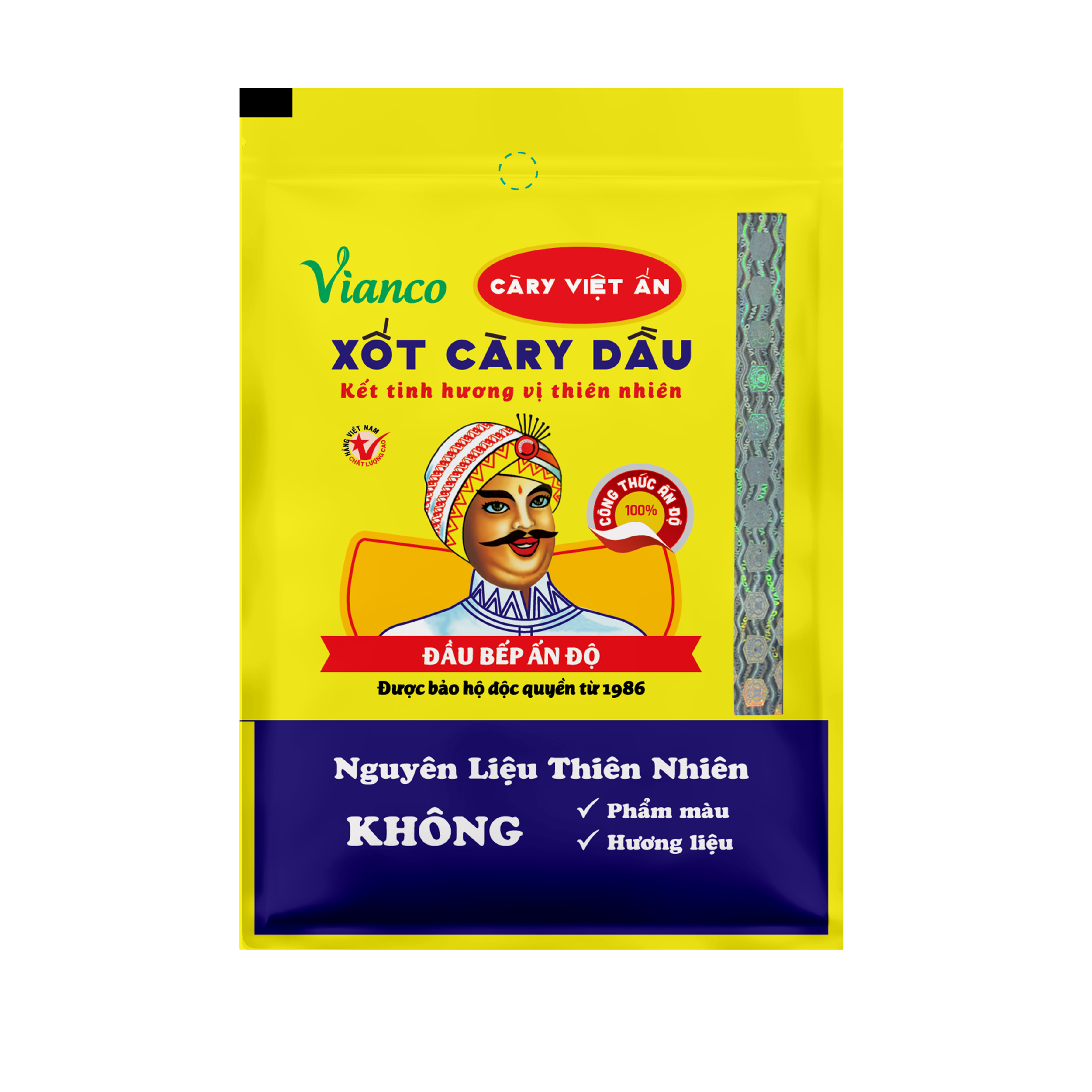 Mua tại TiktokXốt Cà Ry Dầu Việt Ấn- Hiệu Ông Đầu bếp Ấn Độ là gia vị cà ry được khởi nguồn từ năm 1958. Với hình ảnh Ông Đầu Bếp Ấn Độ có màu (không có phiên bản trắng đen), được bảo hộ thương hiệu độc quyền của Công Ty Gia Vị Việt Ấn.
