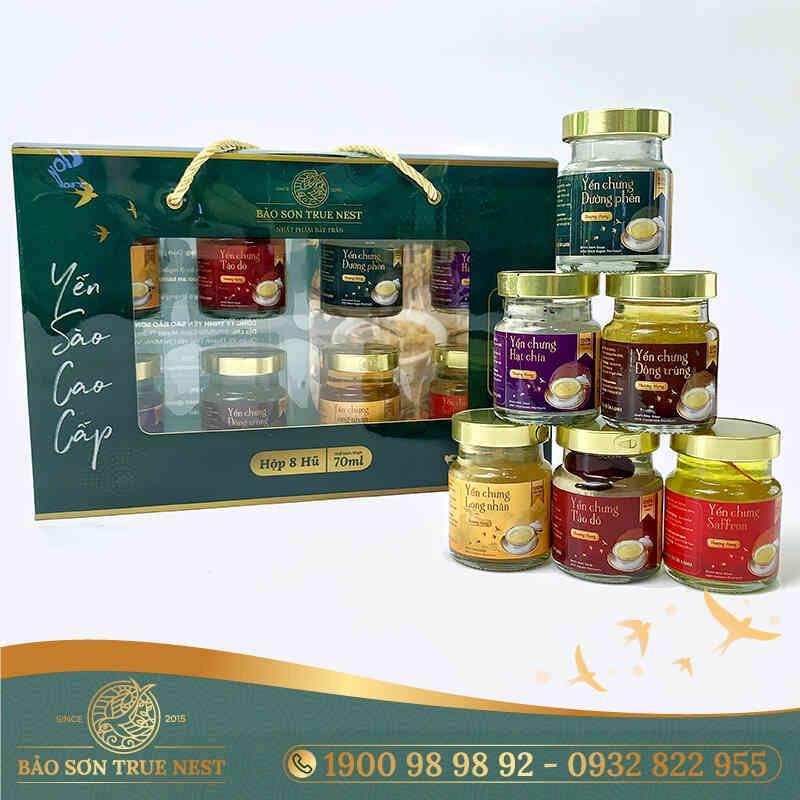 Với sản phẩm tươi sống, trọng lượng thực tế có thể chênh lệch khoảng 10%. BẢO SƠN TRUE NEST - NHẤT PHẨM BÁT TRÂN Sản phẩm: Yến Chưng Saffron (Nhụy hoa nghệ tây). - ĐẶC