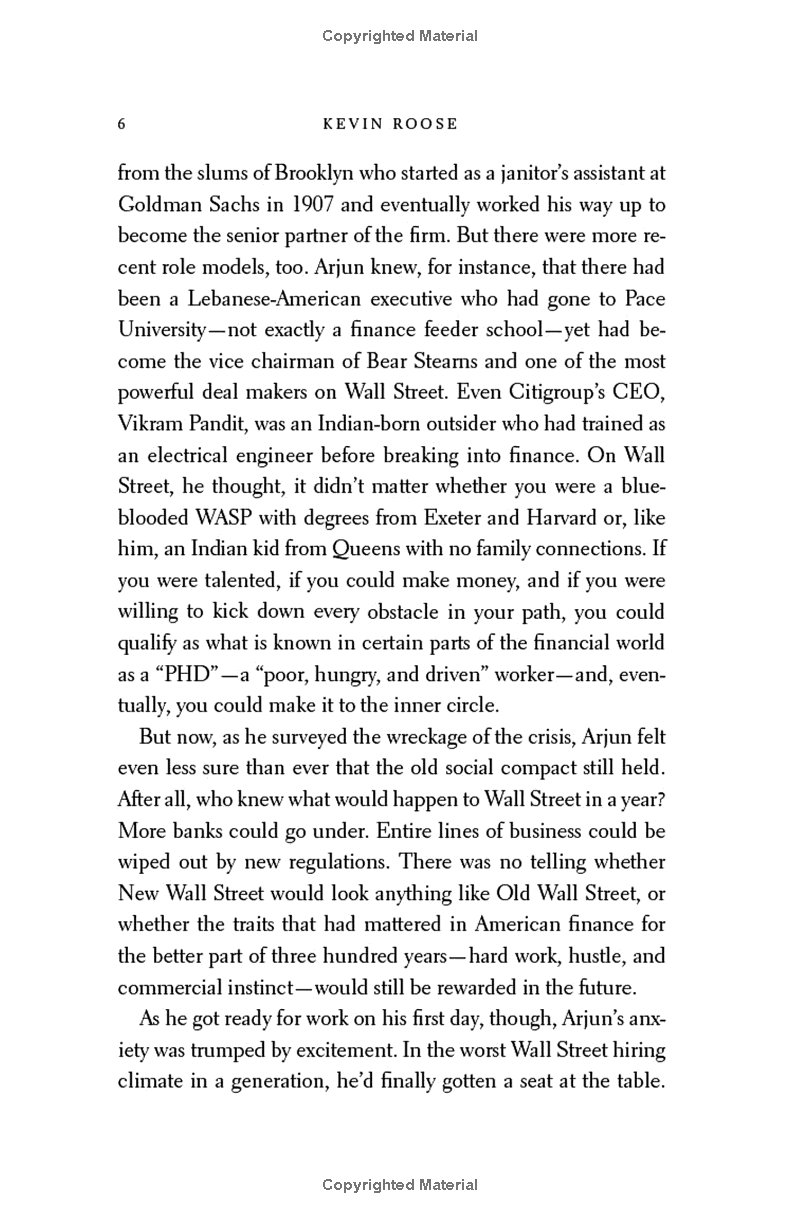Roose's young bankers are exposed to the exhausting workloads, huge bonuses, and recreational drugs that have always characterized Wall Street life. But they experience something new, too: an industry forever changed by the massive financial collapse of 2008. And as they get their Wall Street educations, they face hard questions about morality, prestige, and the value of their work.