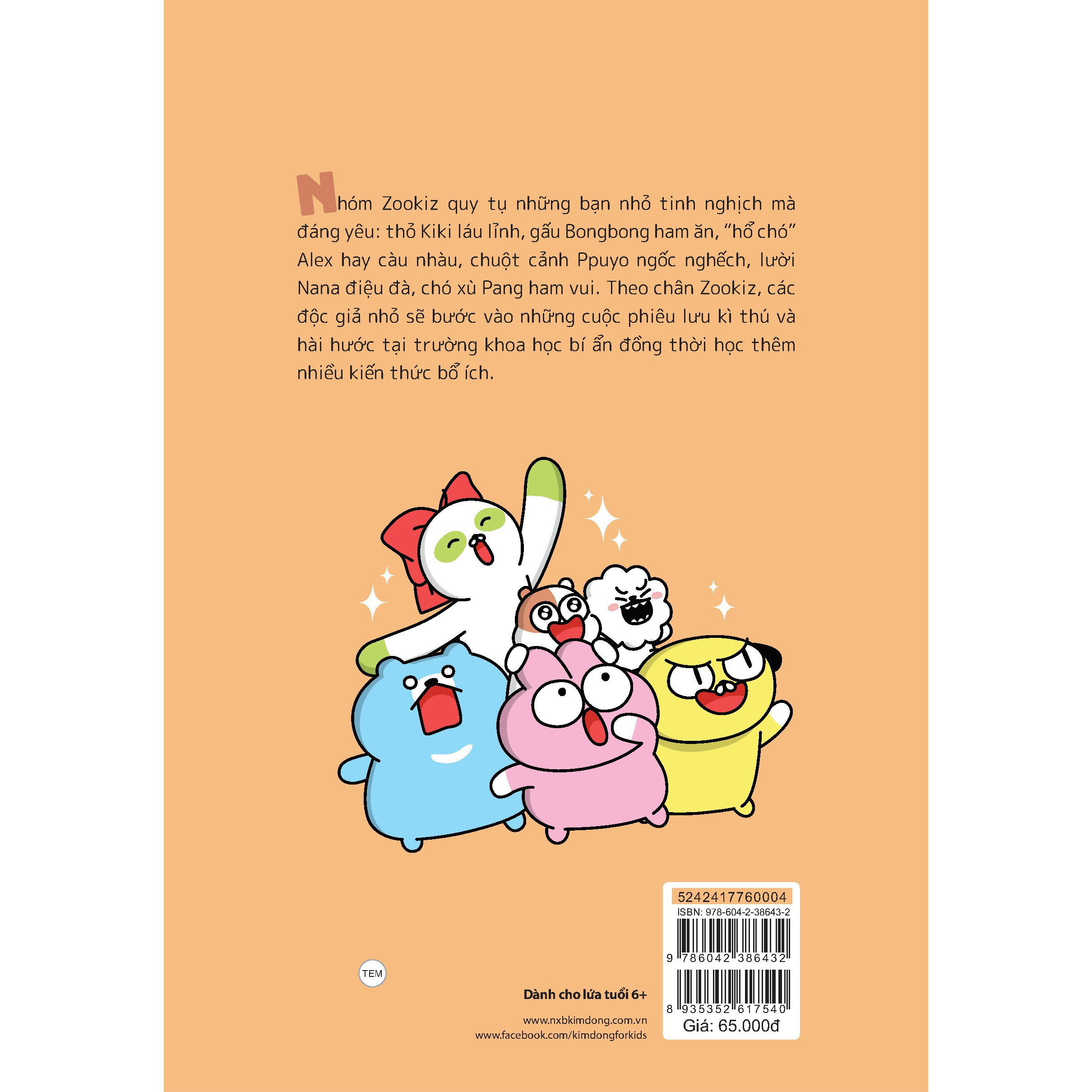 Giới thiệu Nhóm Zookiz quy tụ những bạn nhỏ tinh nghịch mà đáng yêu: thỏ Kiki láu lỉnh, gấu Bongbong ham ăn, “hổ chó” Alex hay càu nhàu, chuột cảnh Ppuyo ngốc nghếch, lười Nana điệu đà, chó xù Pang ham vui. Theo chân Zookiz, các độc giả nhỏ sẽ bước vào những cuộc phiêu lưu kì thú và hài hước tại trường khoa học bí ẩn đồng thời học thêm nhiều kiến thức bổ ích.